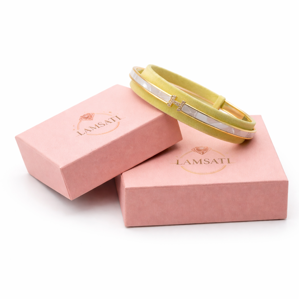 This velvet bracelet features our iconic gold H detail with subtle sparkle and refined mother‑of‑pearl inlay. Soft, feminine and instantly recognizable — delivered in our signature Lamsati gift box.